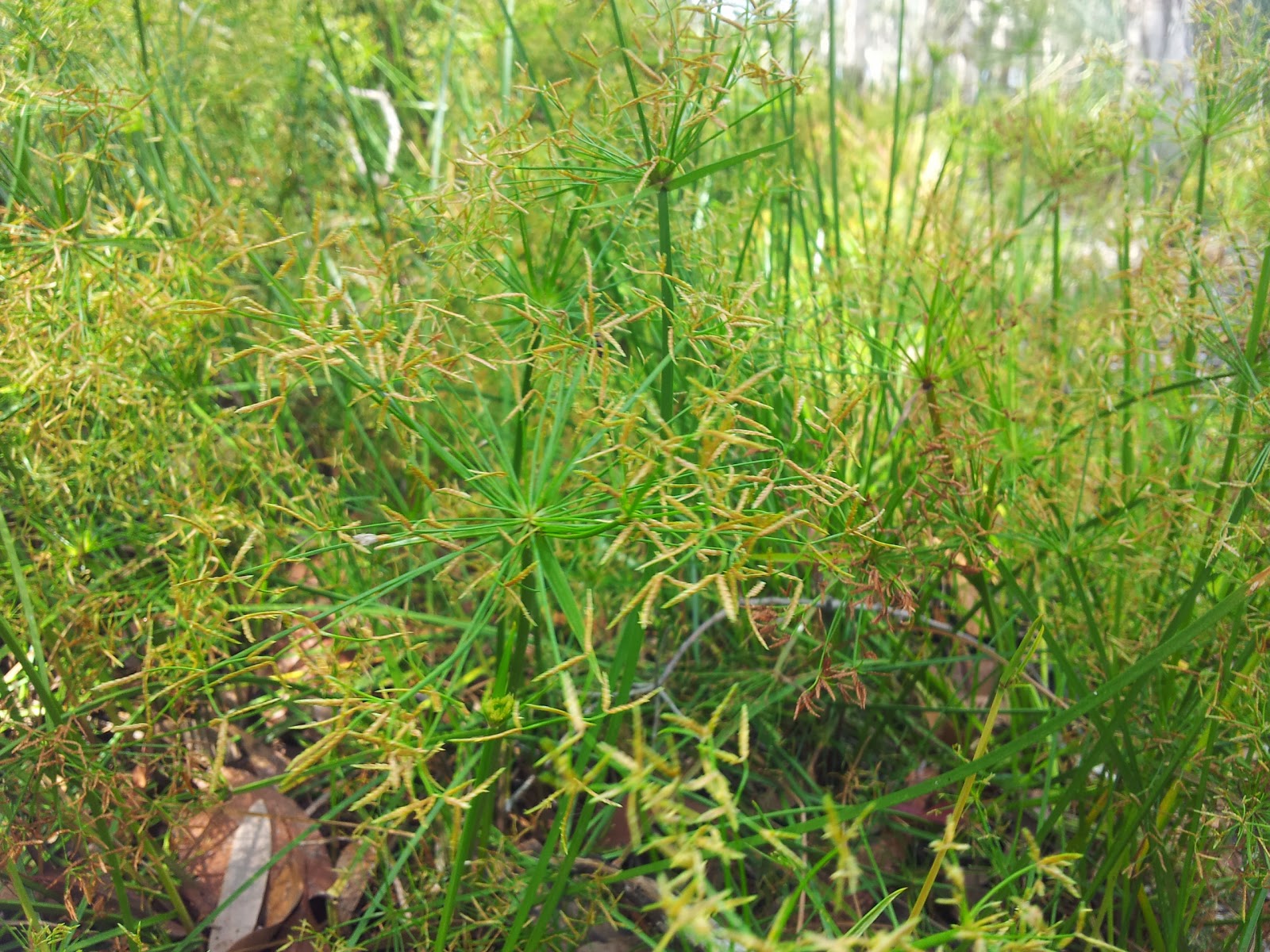 romantic grass of the week: cyperus haspan grows on margins of swamps and creeks in coastal area. these ones were found at MacKenzie Dam, sunshine coast hinterland, also in qld, nsw, wa and nt. up to 40cm tall, short-creeping, erect sedge, triangular leaves, flowers in compound with 5 - 20 branches up to 15 cm long