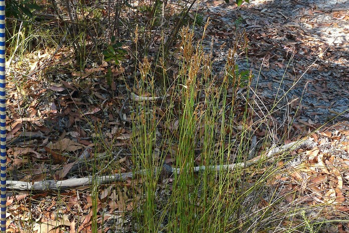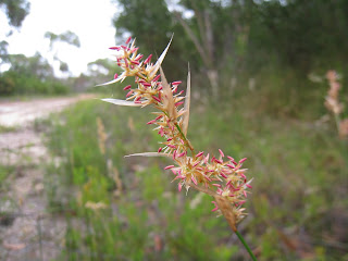 Lepyrodia scariosa (Scale-rush)- found NSW and Qld. Common on Coast and ranges. damp sandy or peaty soil in heath or open forest. stems 30-90cm tall and unbranched, straw coloured leaf sheath 15-30mm long, loose, open. male and female flowers similar, female flowers with consipcuous pale stigmas. flowers aug-jan. first photo by phil diemar at nelson bay, others by John Tann at Dharawal and Heathcote National Parks.