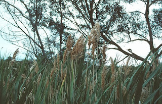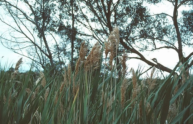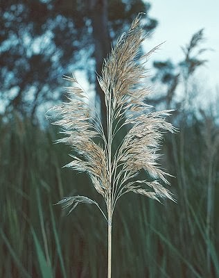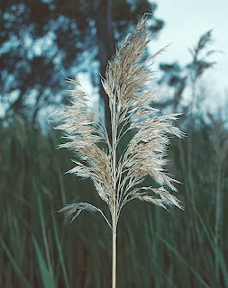 romantic grass of the week - this week the grass will get you high - phragmites australis (the common reed) - a perennial wetlands grass, spreads by runners..The leaves are long for a grass, 20–50 centimetres (7.9–20 in) and 2–3 centimetres (0.79–1.2 in) broad. The flowers are produced in late summer in a dense, dark purple panicle, about 20–50 cm long. Later the numerous long, narrow, sharp pointed spikelets appear greyer due to the growth of long, silky hairs. it occurs all across eastern australia.. and it is a pest in American wetlands as it secretes gallic acid which when combined with uv light is toxic to other aquatic plants. it takes two burns to get rid of this plant, coz its so strong.